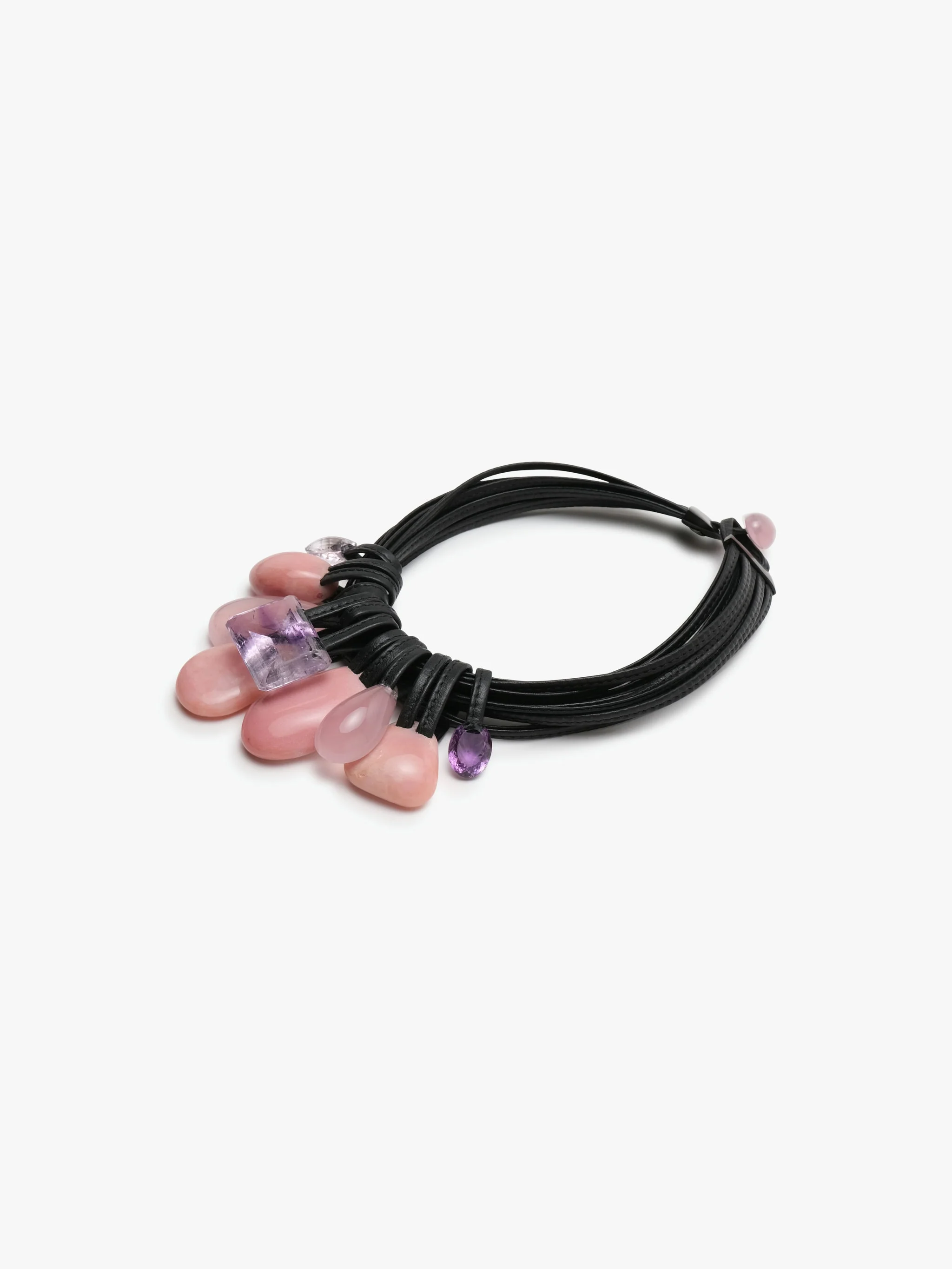 Materials: Andean opal, rose quartz, amethyst, leather, kamagong.Â