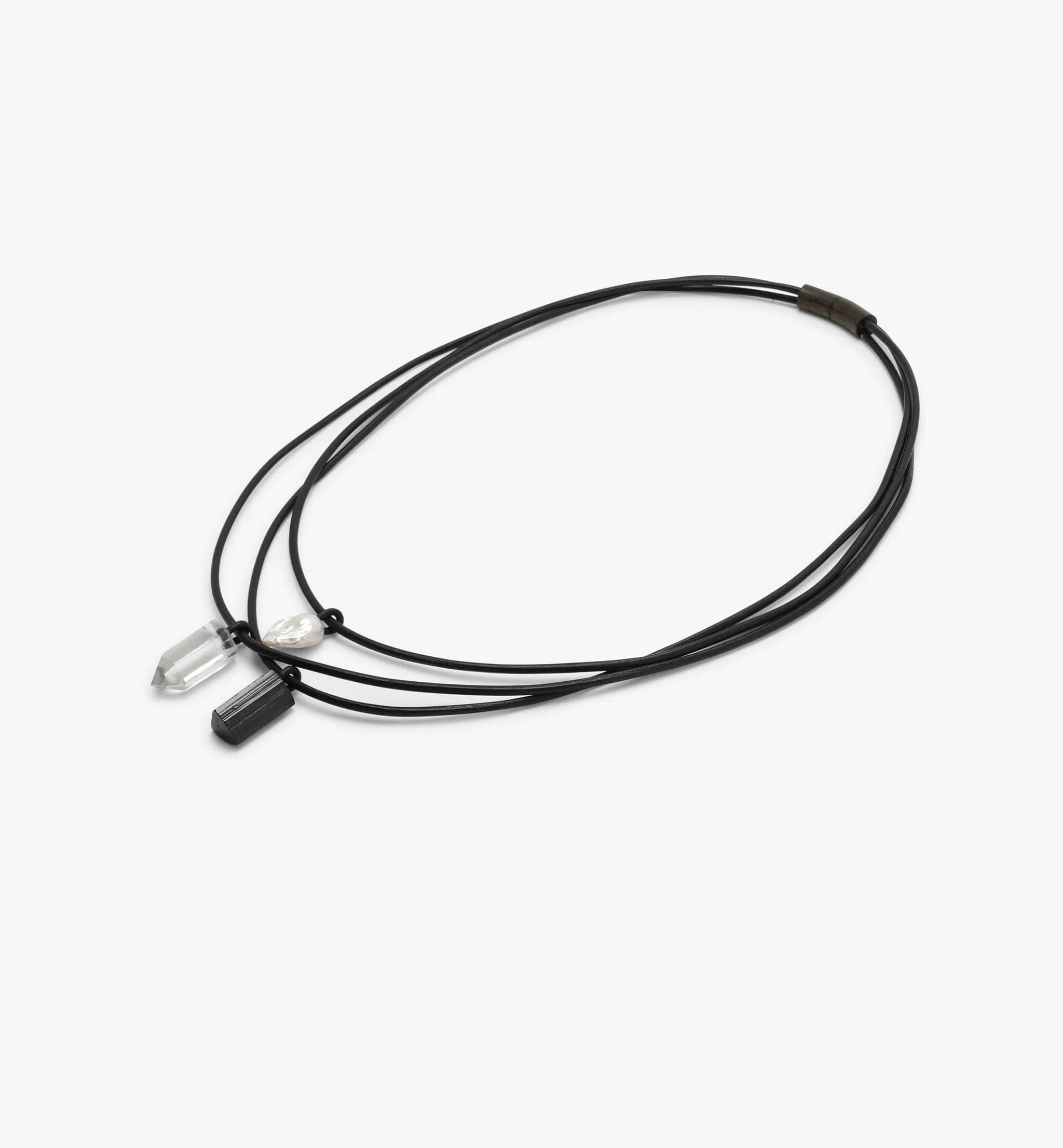 Traverse necklace: pearl, tourmaline, mountain crystal